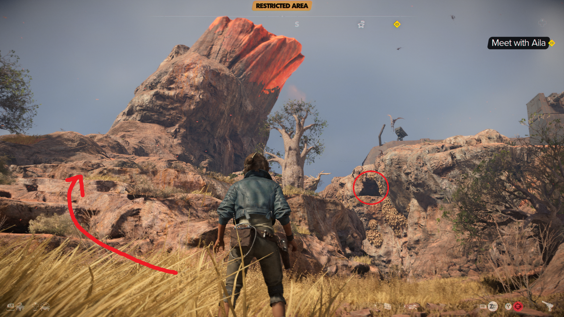 Для этого поднимитесь по тропинке к большому оранжевому скальному образованию к востоку от базы, где вы найдете тропинку, по которой нужно идти, и стену, на которую можно забраться. Когда вы заберетесь наверх, то сможете найти дерево, на котором можно использовать свой захватный крюк, и перемахнуть через него в пещеру, в которой есть удобное вентиляционное отверстие, ведущее внутрь базы.