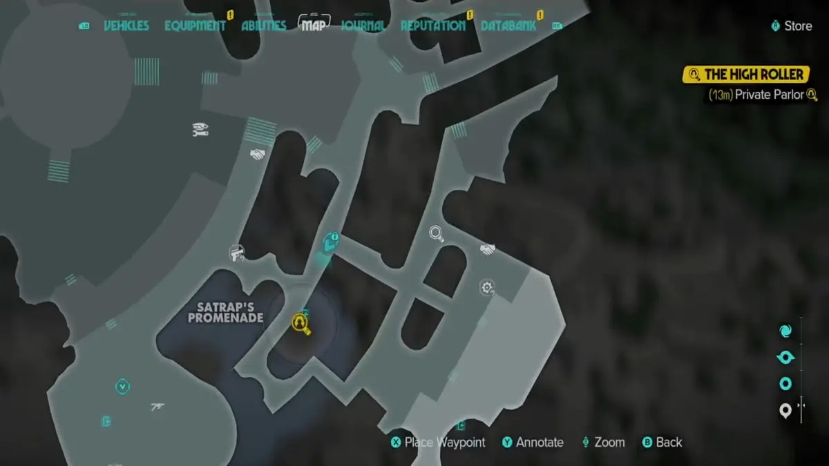 Указания приведут вас на Променад Сатрапа, расположенный неподалеку, и в салон сабакка под игорным притоном в районе Мирры Хатт. Следуйте к путевой точке, отмеченной при отслеживании квеста, и поговорите с вышибалой у двери. Вы можете либо подкупить его, либо воспользоваться своими связями. Я выбрал последнее.
