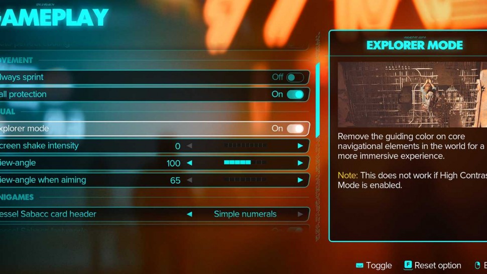 Чтобы убрать желтую краску, не нужно прыгать через обручи или устанавливать мод. К счастью, Massive Entertainment, разработчик Star Wars Outlaws, включила в игру опцию, позволяющую отключить эту функцию. Однако найти ее среди моря опций и меню может быть непросто.
