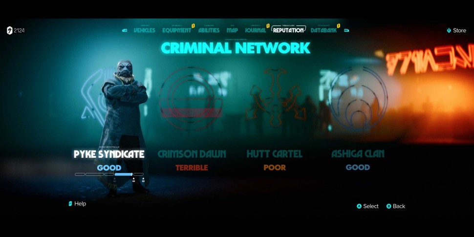 Одна только основная история не дает достаточно возможностей, чтобы довести до максимума отношения Кей с одной фракцией, не говоря уже обо всех. Однако, выполняя контракты и используя некоторые другие способы повышения репутации фракции, можно наладить отличные отношения со всеми четырьмя крупными преступными синдикатами и получить все соответствующие награды.