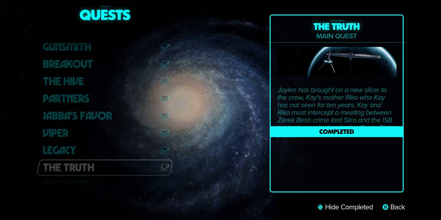 Основная история Star Wars Outlaws длится около 15 часов и разбита на квесты, полный список которых вы можете найти ниже. Те, кто ищет информацию о точке невозврата в игре, также могут найти ее здесь, как и те, кто интересуется послеигровым контентом.