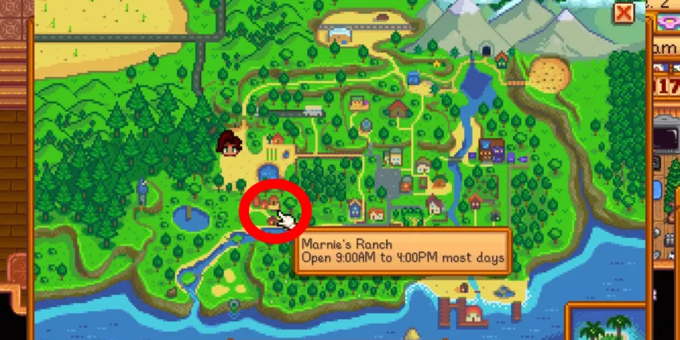 Игроки, которым не хватает сена, могут купить его у Марни. Каждый кусок сена стоит 50 золота и может быть куплен на ранчо Марни, расположенном к югу от фермы игрока в Синдерсапском лесу.