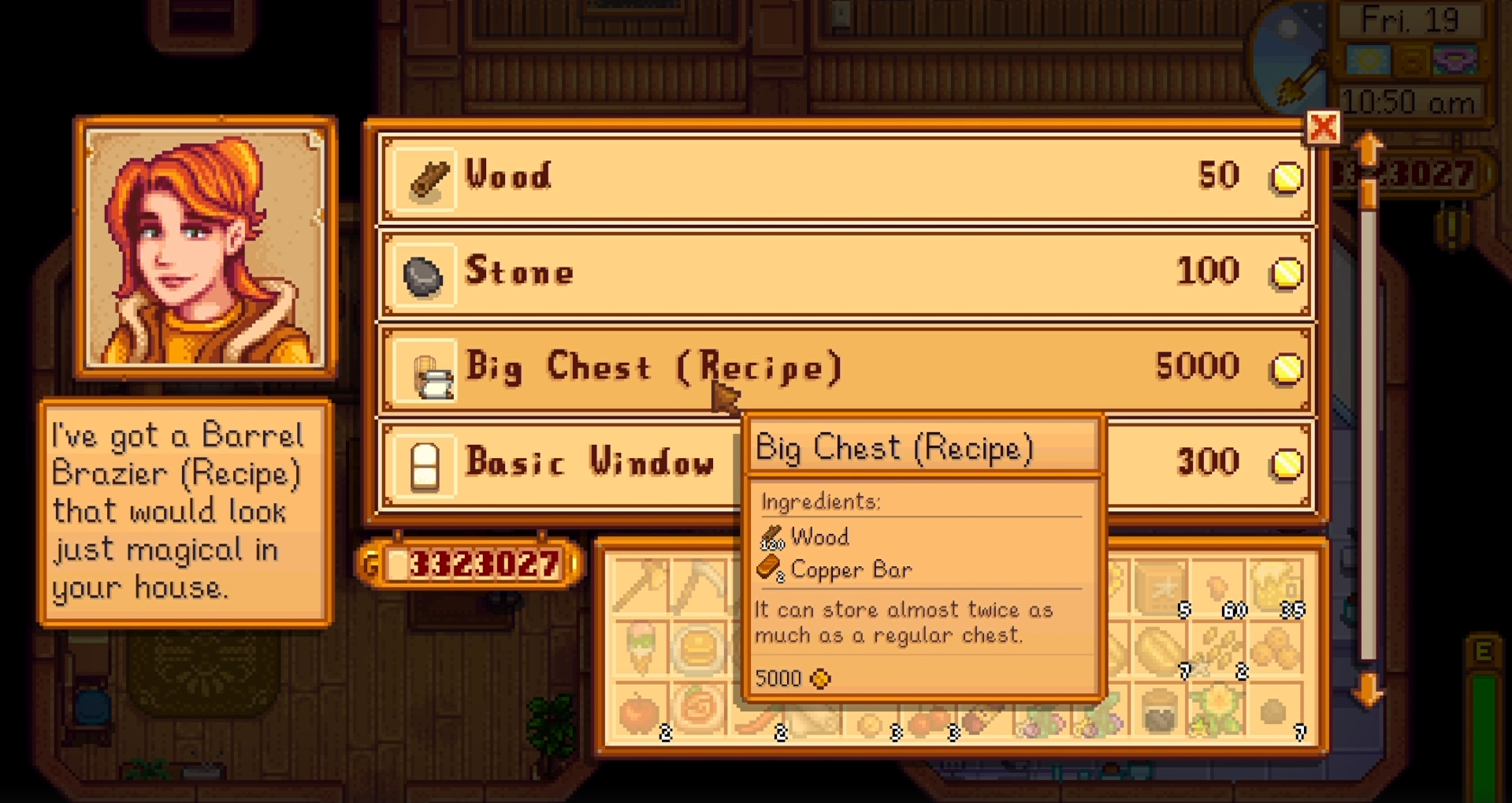 Как и в случае с другими предметами в игре, прежде чем сделать большой сундук в Stardew Valley, вам нужно будет приобрести рецепт для его изготовления. Этот рецепт продается городским плотником Робином и стоит 5 000 золотых монет.