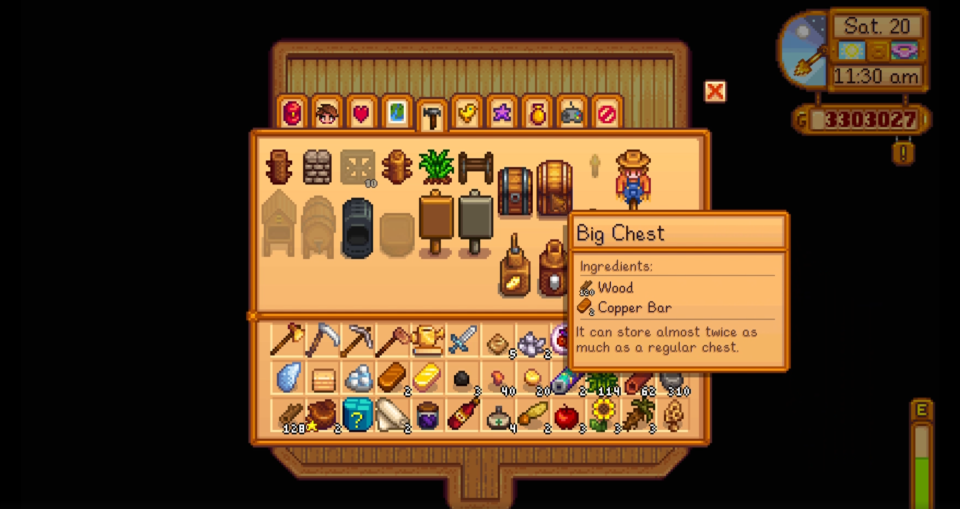 Обновление 1.6 для Stardew Valley содержит множество нового контента, направленного на улучшение качества жизни, в надежде сделать вашу фермерскую жизнь еще более увлекательной. Разработчики ConcernedApe прислушались к просьбам поклонников Stardew Valley и добавили новый предмет хранения под названием "Большой сундук".