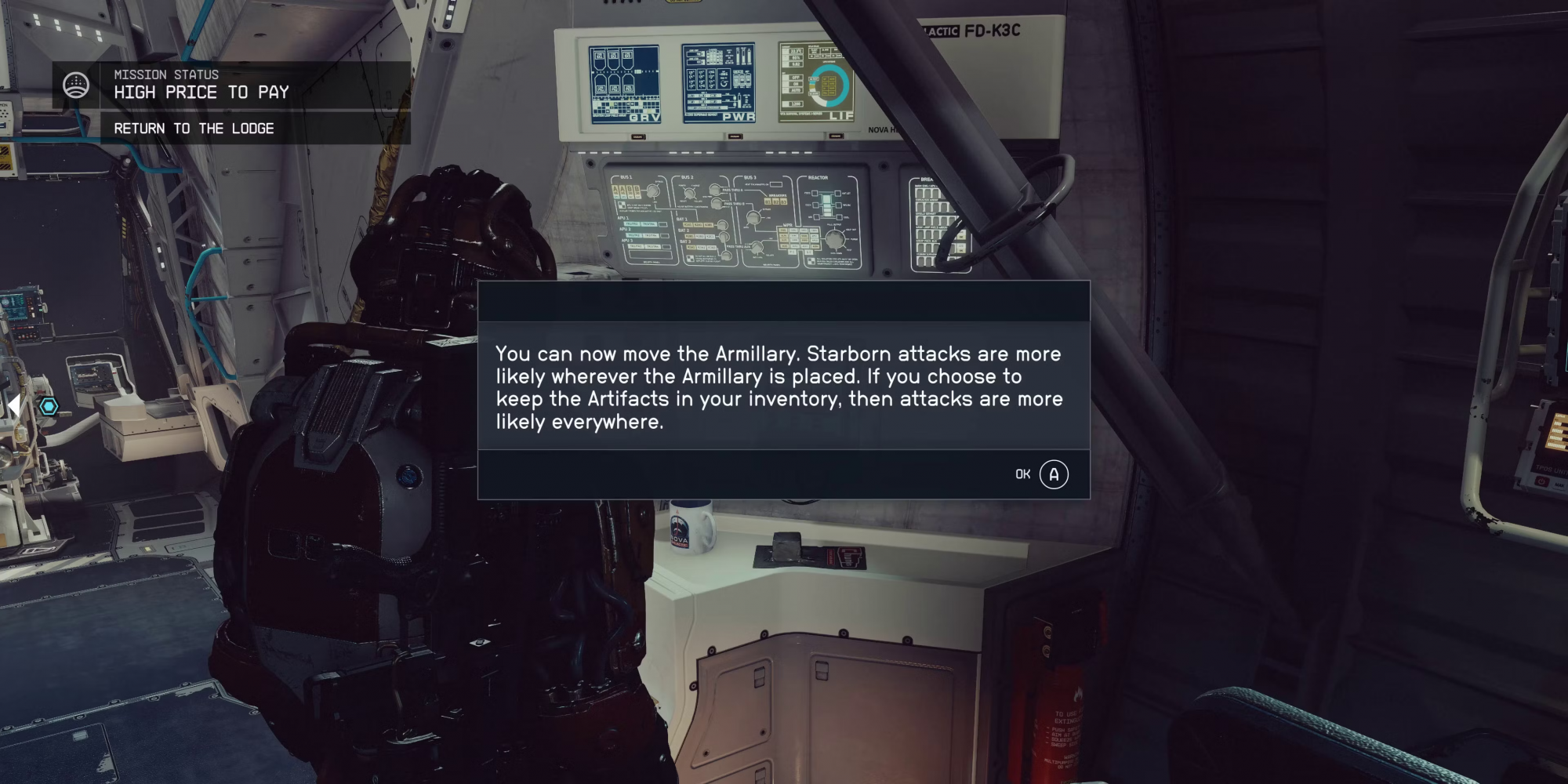 Из этих двух вариантов, пожалуй, лучше строить Армилларий на борту своего корабля, так как Starborn, как правило, нападает только в тот момент, когда игрок его пилотирует. Можно установить системы защиты на аванпостах или даже разместить там пару членов экипажа, чтобы следить за вторжением Starborn, но это требует ресурсов и рабочей силы, поэтому не является идеальным вариантом. Кроме того, это повышает вероятность повреждения существующей инфраструктуры во время перестрелок, поэтому игрокам стоит подумать о строительстве нового форпоста специально для хранения артефактов, если они решили пойти по этому пути.