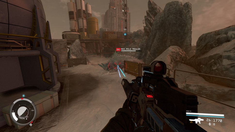 Главным развлечением в "Красной миле" является кровавый спорт и игра на ставках, называемая просто "гонка Красная миля". Цель у участников одна - добраться до маяка в конце кратера, кишащего хищниками, который к тому же испещрен жерлами токсичных газов. Записаться на этот смертельный забег можно, поговорив с Мей в холле/баре.