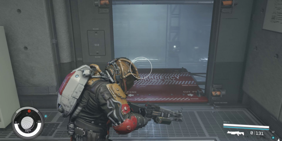 Если игроки внимательно присмотрятся, то увидят, что в красной части каждой аварийной стены в каждом из четырех углов находится металлический стержень. Чтобы открыть ее, нужно всего лишь перерезать эти четыре штыря в соответствии с информацией, указанной на двери. Это можно сделать с помощью резака, если таковой окажется под рукой, но можно также выстрелить в них из дробовика или просто ударить оружием ближнего боя, пока они не сломаются и дверь не упадет назад.