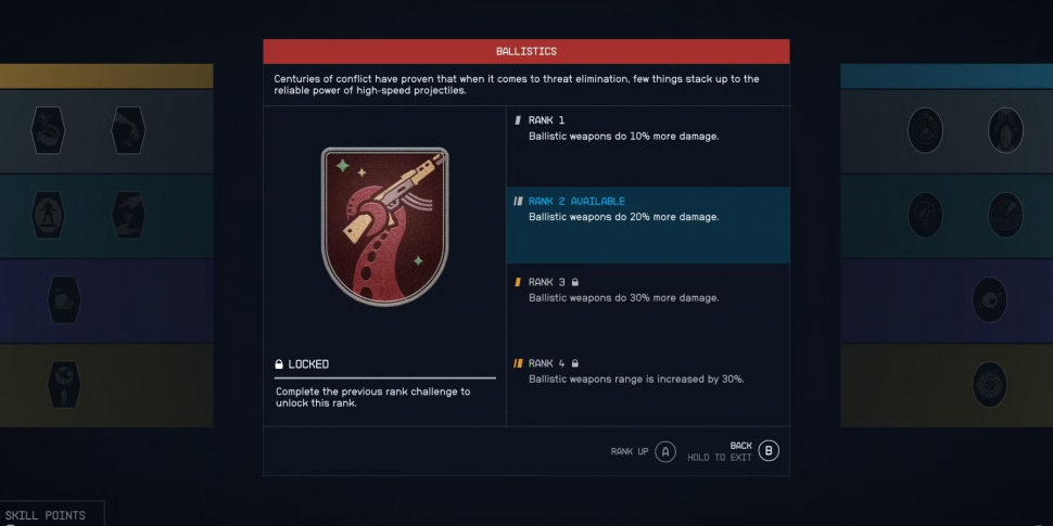 Важно помнить, что навык не может быть повышен до следующего ранга, пока игрок не выполнит задание, необходимое для его разблокировки. Например, чтобы получить второй ранг навыка "Баллистика", игроку необходимо убить 20 врагов, используя баллистическое оружие. Для каждого ранга навыка существует своя задача, поэтому игрокам стоит обратить внимание на требования.
