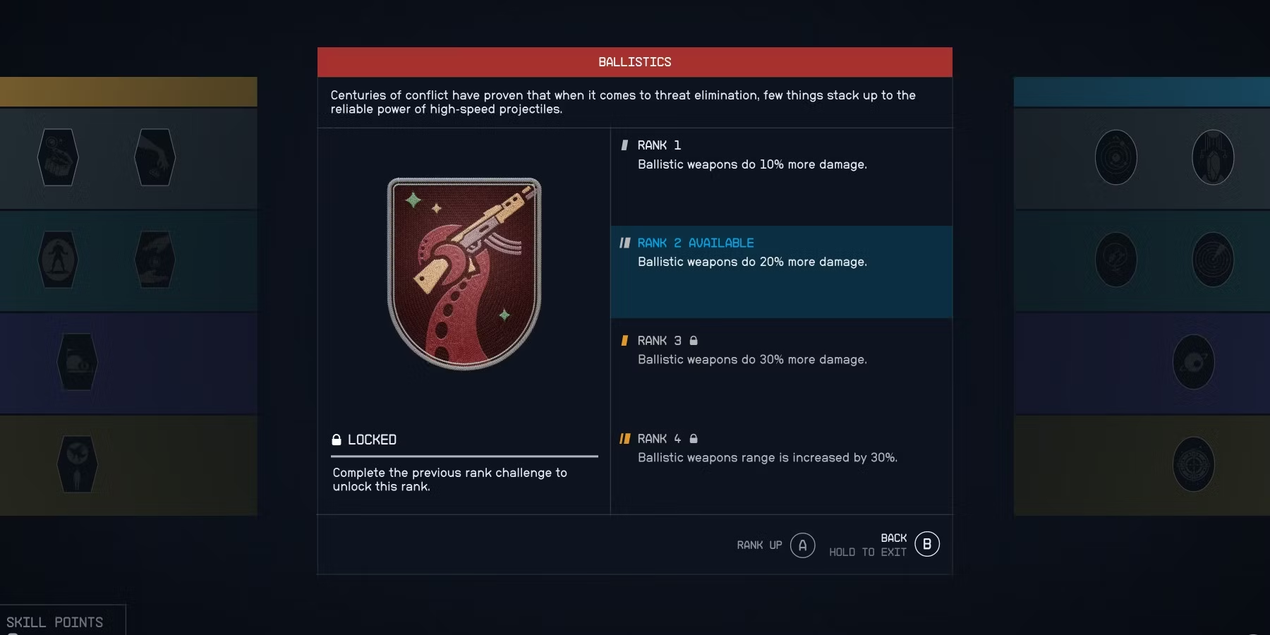 Важно помнить, что навык не может быть повышен до следующего ранга, пока игрок не выполнит задание, необходимое для его разблокировки. Например, чтобы получить второй ранг навыка "Баллистика", игроку необходимо убить 20 врагов, используя баллистическое оружие. Для каждого ранга навыка существует своя задача, поэтому игрокам стоит обратить внимание на требования.