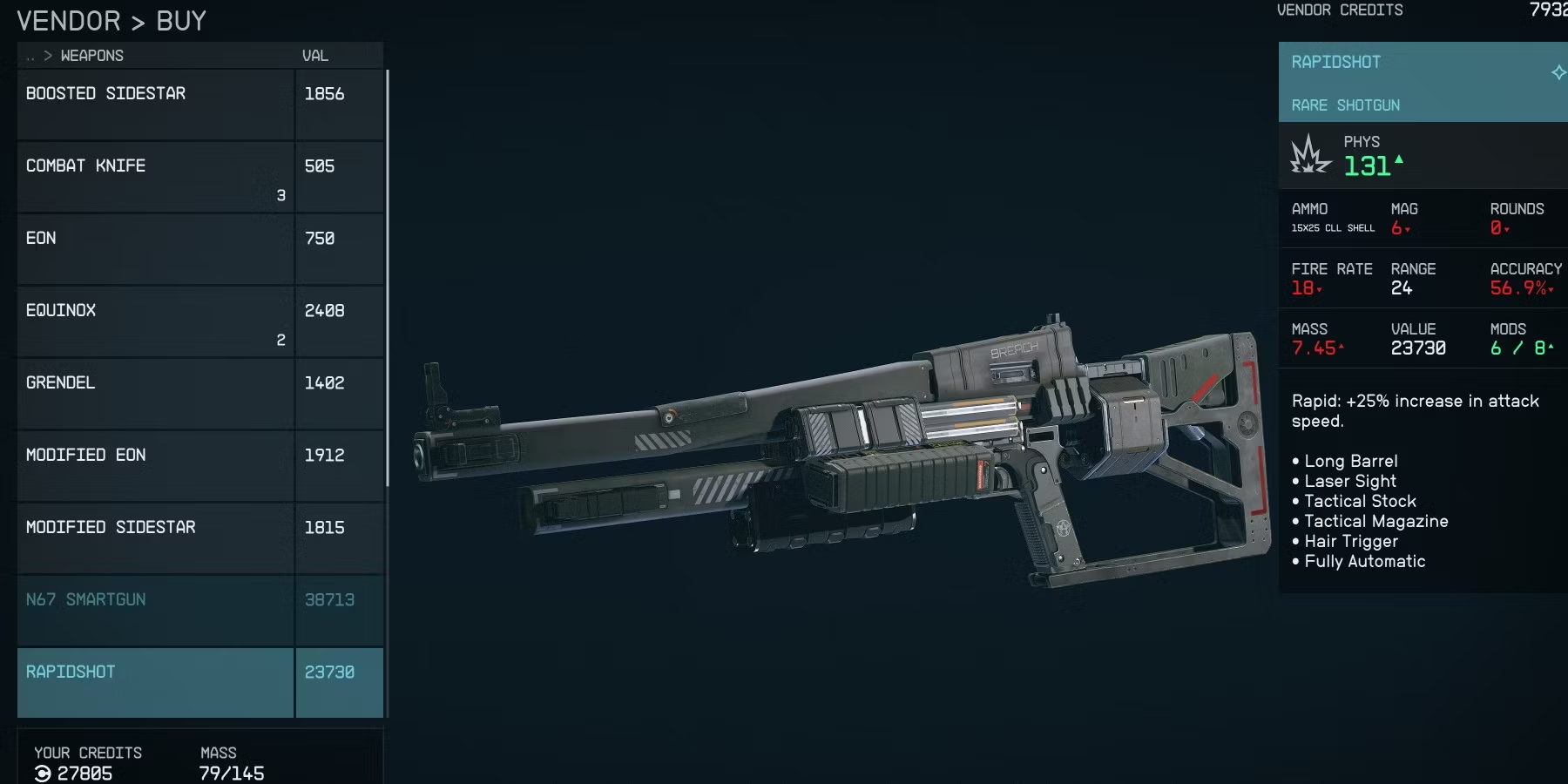 На протяжении всего Starfield у игроков будет множество возможностей разграбить случайные контейнеры и врагов. Предметы, получаемые при разграблении, в определенной степени рандомизированы. Это касается и редкости выпадающих предметов. В общем, один из способов получить дробовик - это снять его с врага. Поскольку это происходит совершенно случайно, некоторые игроки находят его сразу же, а другие могут часами не видеть ни одного дробовика. Дробовик, изображенный на рисунке выше, был найден на галактическом складе Nova.