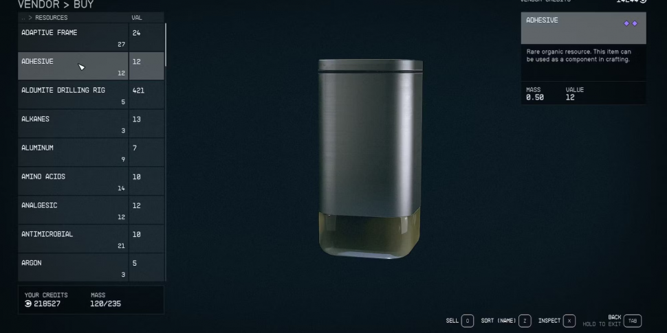 Более надежным способом получения клея является его покупка у торговцев. Как и в других играх Bethesda, запасы торговцев в Starfield обнуляются через некоторое время. Выберите торговца товарами общего пользования, например Outland в Новой Атлантиде, купите у него весь запас клея, а затем найдите кровать или стул, на котором можно отдохнуть. Нажмите появившуюся на экране кнопку Wait или Sleep и установите на всякий случай значение 24 местных часа.