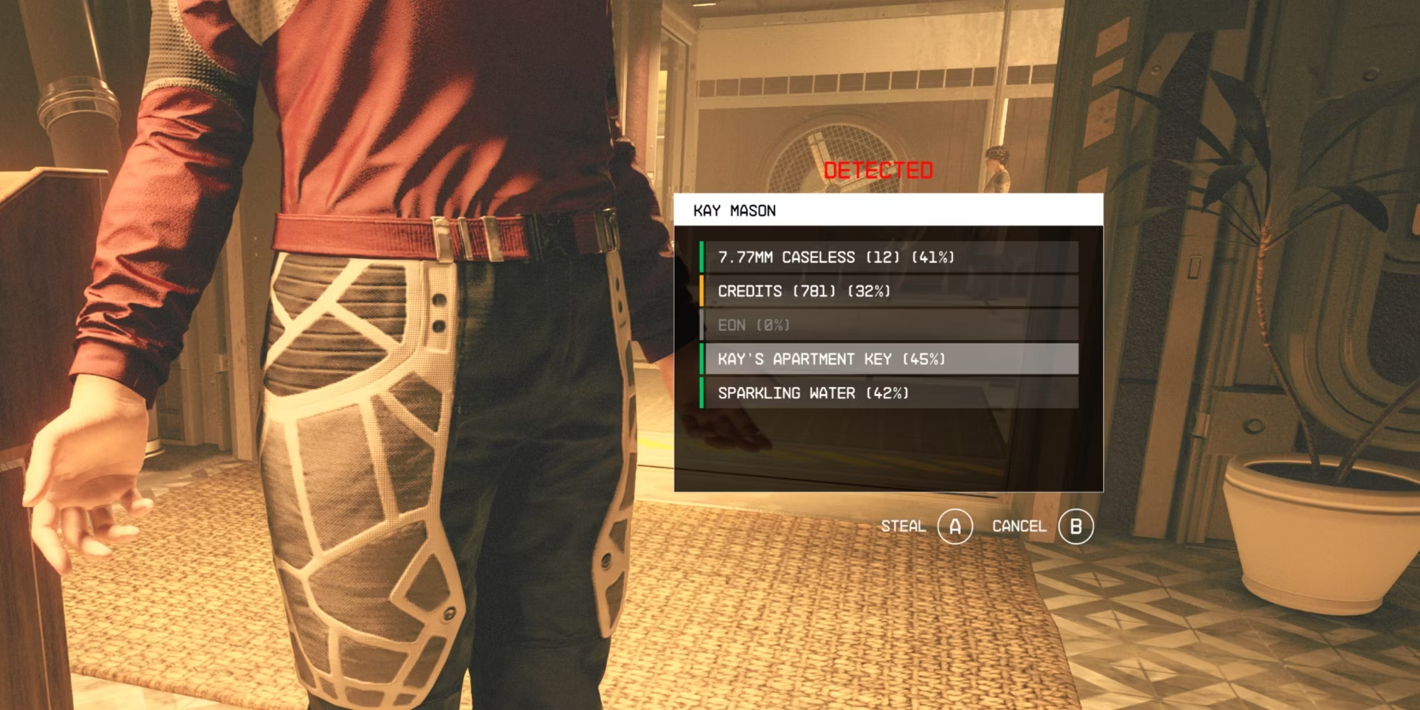 В Starfield важно стараться оставаться незамеченным при попытке карманной кражи: если игрок будет обнаружен, это значительно снизит его шансы на успешную кражу без поимки. Воровство в Starfield запрещено законом, поэтому, если игрока поймают, это увеличит его вознаграждение в Объединенных колониях, а служба безопасности может быть сразу же оповещена.