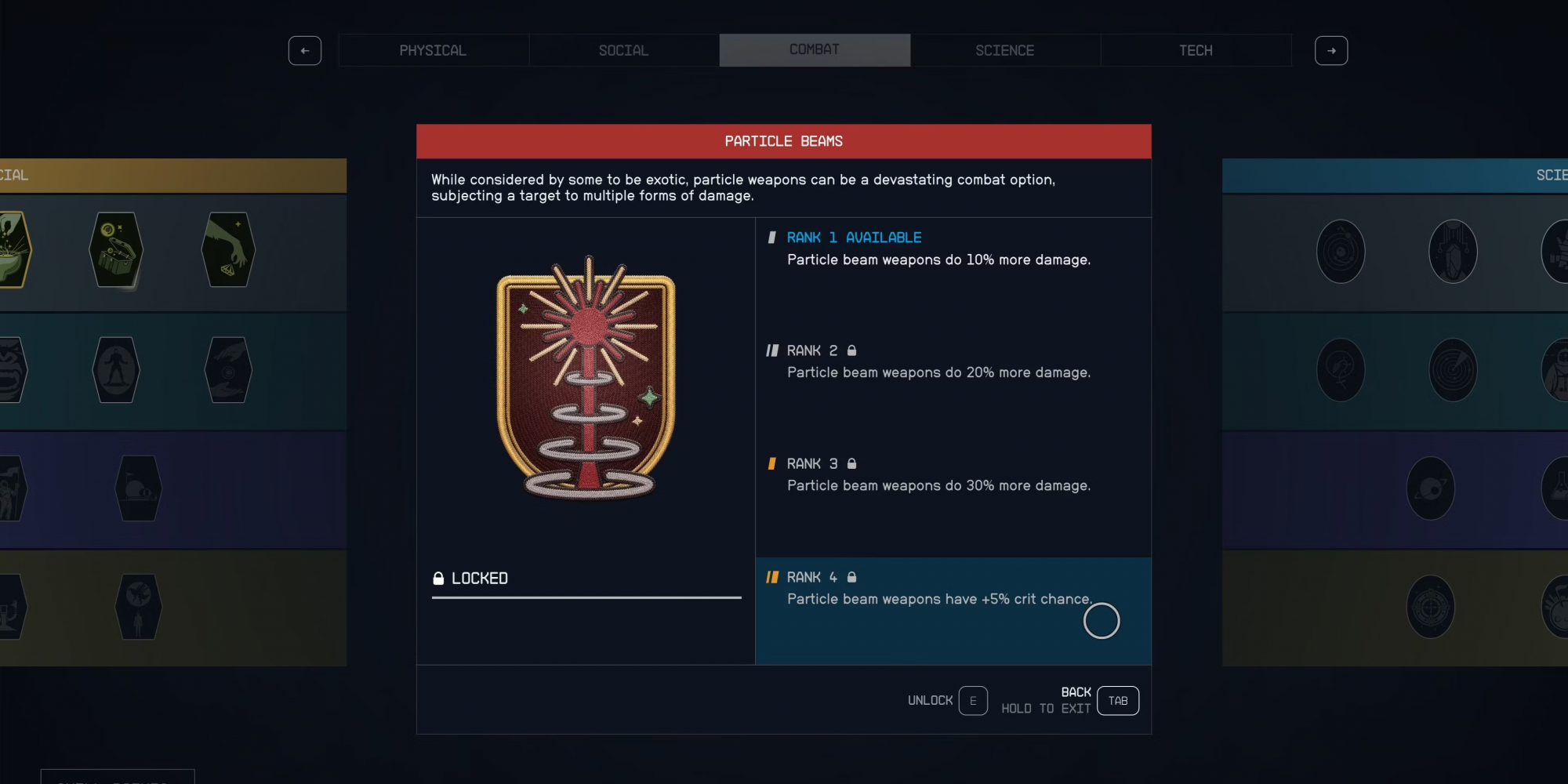 Перк Particle Beams, расположенный в дереве Combat, увеличивает урон оружия Particle Beam на 10%. Это идеальный выбор для тех, кто хочет насладиться экзотическим балансом урона от оружия с энергетическим и физическим уроном. Ранг 2 дает игроку 20% бонусного урона, а ранг 3 - 30%. Ранг 4 является исключительным, так как он дает 5% крита оружию Particle Beam. Это относится к ручному оружию, использующему патроны с частицами лучей.