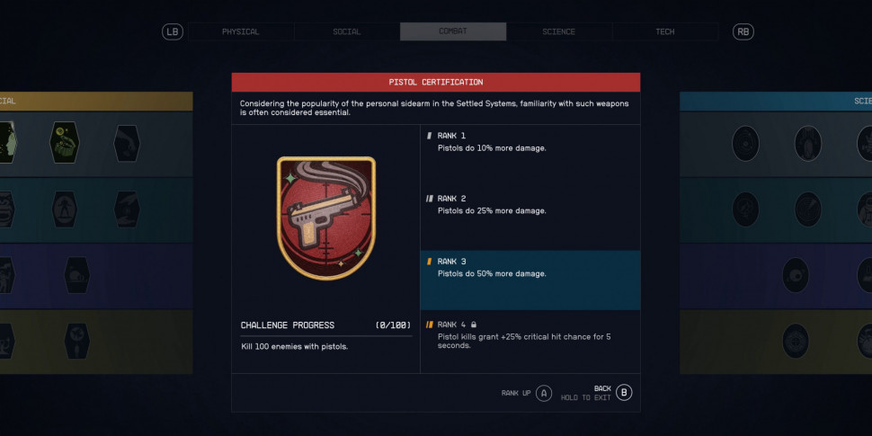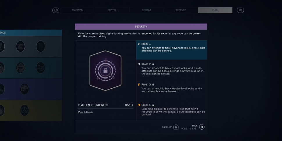 К сожалению, повышение уровня навыков в Starfield не сводится к простому начислению очков умений до достижения ими 4-го ранга. Для ясности, игрокам все равно понадобятся очки умений, но перед тем, как получить возможность повысить ранг, им придется пройти специальное испытание, характерное для каждого навыка.