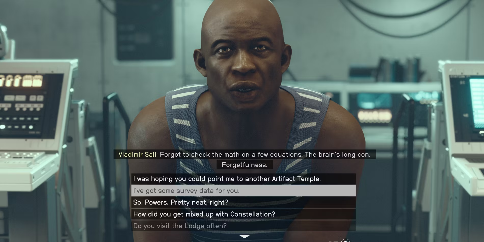 С Владимиром игрок познакомится в самом начале основного сюжета Starfield. Его можно найти на космической станции Constellation, известной как "Око". Его основной функцией будет использование системы сканирования для поиска наиболее важных предметов в игре. Поэтому вполне логично, что его будут интересовать и данные обследования.