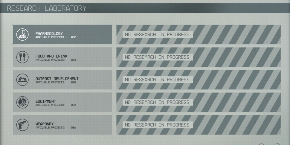 Взаимосвязь между исследованиями и навыками прослеживается во всех исследовательских проектах. Исследование лучших продуктов питания требует навыка "Гастрономия", а лучших медицинских препаратов - навыка "Химия". В результате каждый новый набор разблокировок ощущается как действительно заработанный и заставляет игрока по-настоящему задуматься о том, как потратить каждое очко навыка.
