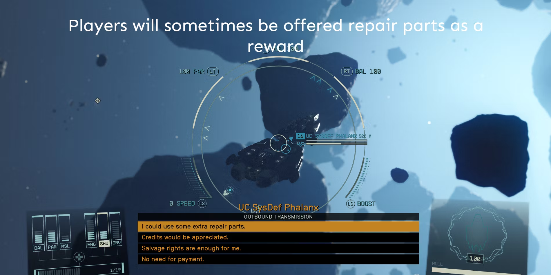 Иногда игроку приходится спасать другой корабль, попавший в беду, и одной из наград, которую он может выбрать, являются ремонтные детали. Это отличный способ получить бонусные детали в бою.