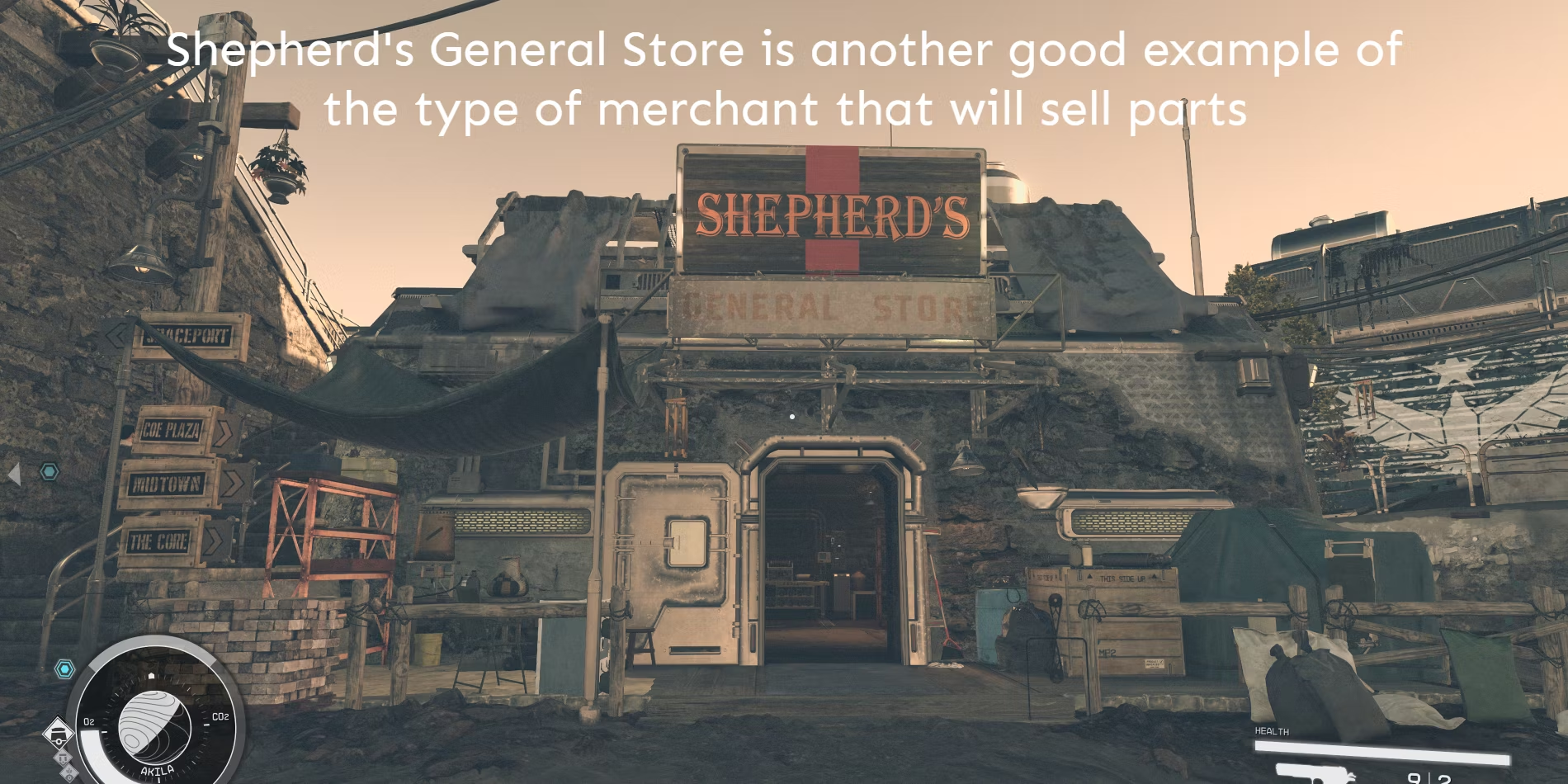 Еще один пример торговца запчастями можно найти в городе Акила в системе Шайенн. Следуя основному сюжету, игрок попадет сюда во время прохождения сюжетной линии Сэма Коу. При входе в город игроку придется пройти по длинному коридору. Повернув налево сразу после выхода, игрок попадет в магазин Shepherd's General Store, в котором продаются четыре детали для кораблей.