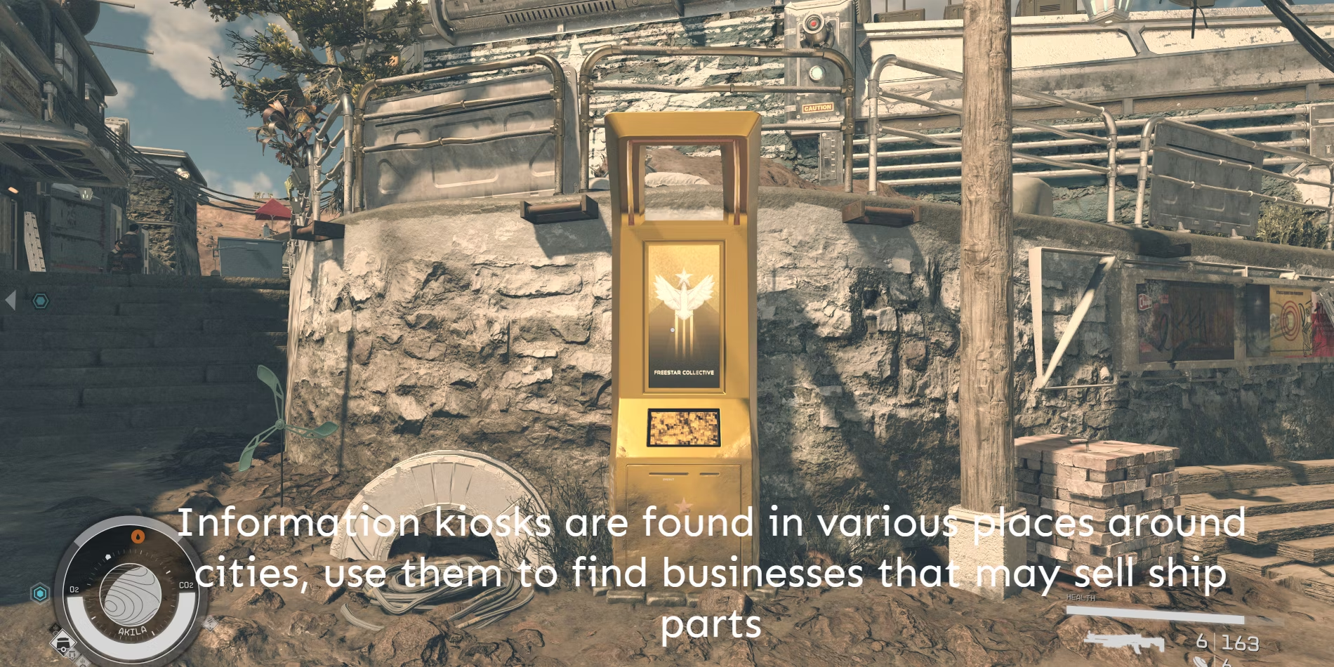 Еще одним важным инструментом для поиска торговцев в том или ином городе является информационный киоск, который можно найти в Акила-Сити сразу за магазином Shepherd's General Store. В этих информационных киосках размещается информация о важных местах в каждом городе, в том числе и о предприятиях. Магазины, предлагающие широкий выбор, имеют наибольшие шансы иметь в наличии запчасти для кораблей.