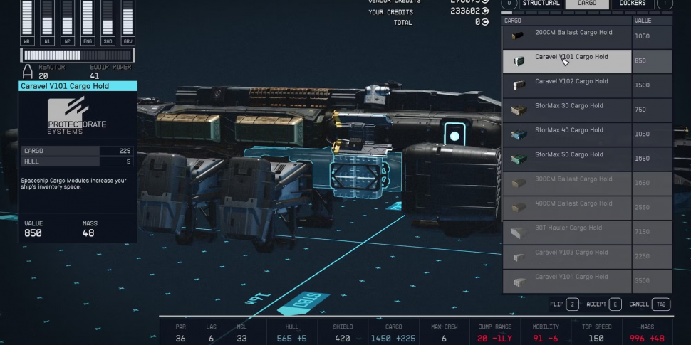 Starfield: Как увеличить грузоподъемность корабля
