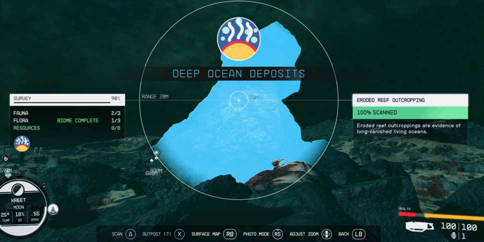 Геймеры могут открыть карту Kreet Starmap и выбрать определенный район планеты, что позволит определить тип биома, в котором они будут путешествовать.