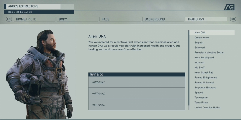 Как и во многих других современных ролевых играх, в Starfield присутствует множество взаимосвязанных систем, определяющих характер персонажа и позволяющих получить бонусы и способности, которыми он будет пользоваться на протяжении всего прохождения игры. В их число входит система трейтов, с которой игроки познакомятся на начальных этапах игры при выборе фона и внешнего вида персонажа.