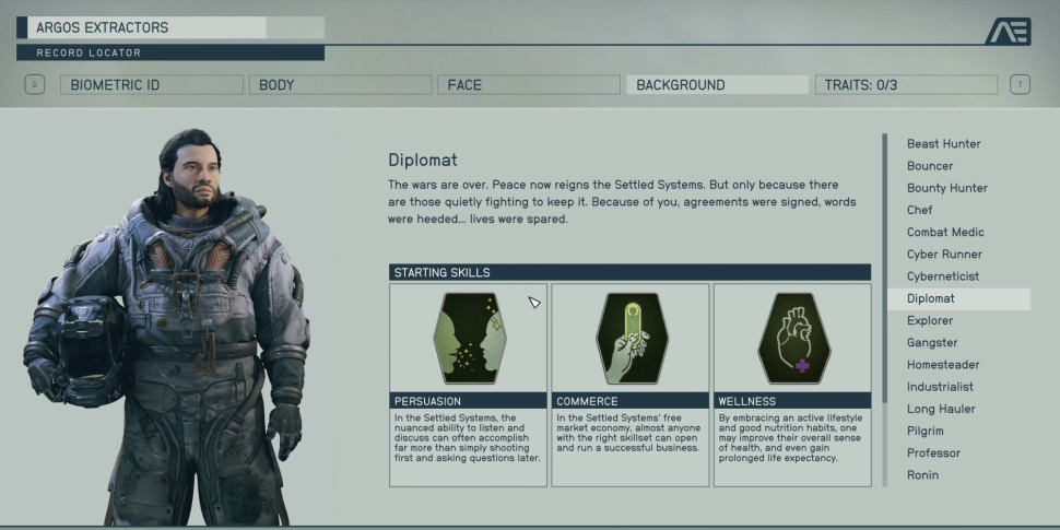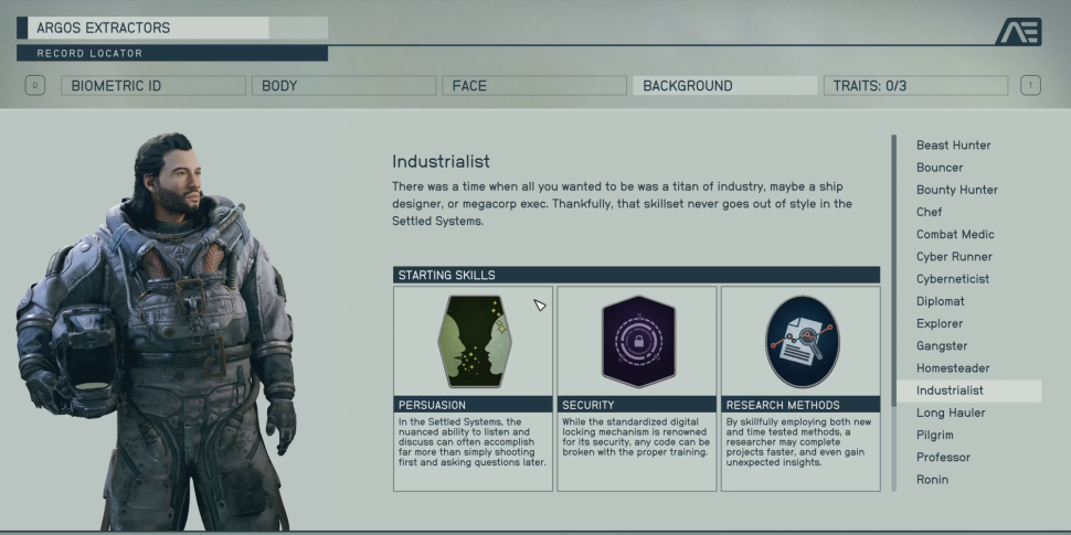 Как и во многих других современных ролевых играх, в Starfield игроки не ограничиваются внешним видом, а определяют личность своего персонажа в процессе его создания. В конечном итоге это не слишком влияет на игровой процесс, но от выбранного фона зависит, с какими тремя навыками игрок начнет игру.