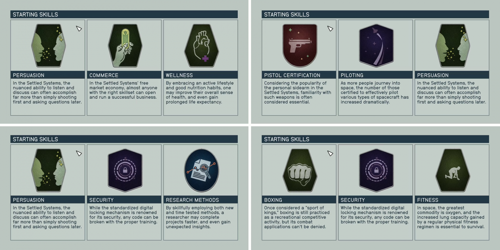 Учитывая, что в процессе прохождения игры игроки смогут разблокировать все стартовые навыки, им не стоит особо беспокоиться о выборе фона. Тем не менее, каждый фон предоставляет игроку уникальные варианты диалогов в определенных ситуациях, и хотя не похоже, что эти варианты диалогов могут сильно повлиять на прохождение игры, кроме как раздражать или радовать определенных NPC или компаньонов, игроки все же могут пожелать выбрать фон, который соответствует их собственному характеру или интересам.