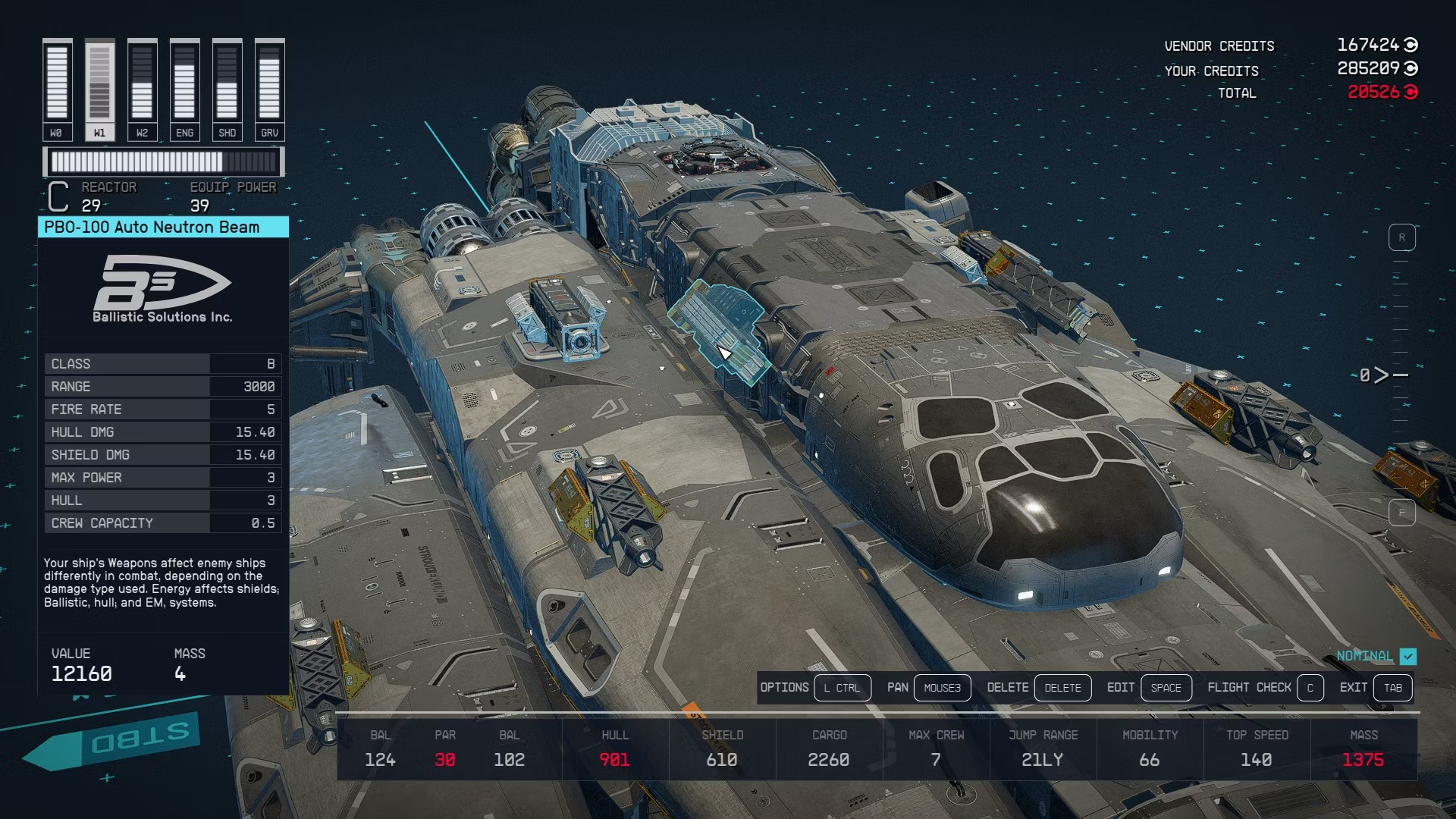 Одно из лучших в игре оружие с частицами - PBO-100 Auto Neutron Beam, оружие класса B, быстро наносящее 15,40 урона за выстрел. Очередь из четырех таких пушек способна мгновенно разрушить щиты небольших кораблей и прорвать их корпус как бумагу. Недостатком этого оружия является его высокая энергоемкость, поэтому необходимо иметь приличный реактор класса B.