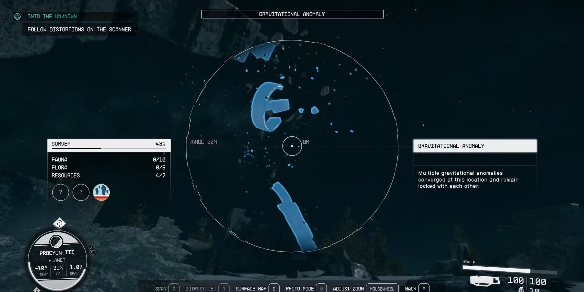 Не обращайте внимания на гравитационные аномалии на планете и просто продолжайте двигаться в том направлении, в котором возникают искажения сканера.