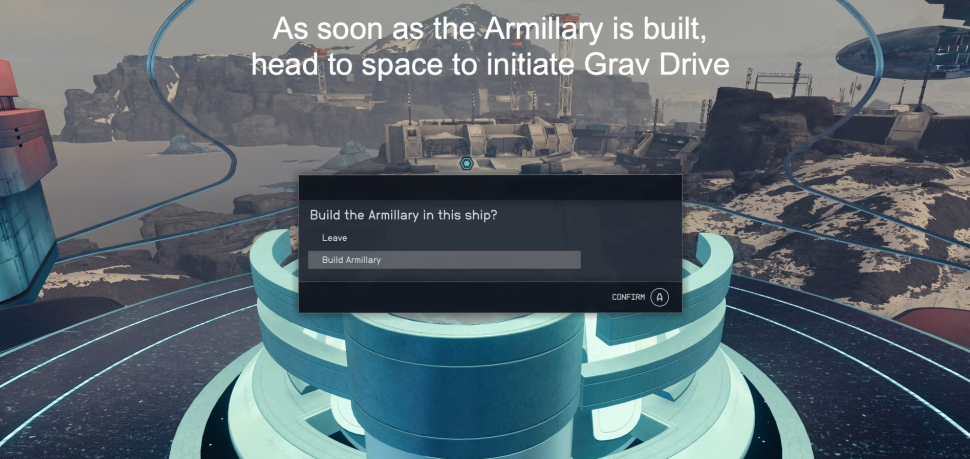 Как только Армилларий будет построен, один грави-прыжок перенесет игрока в Юнити. Если игроки хотят подождать, просто разрушьте Армилларий и завершите все дела, а затем восстановите его, когда будете готовы к отлету.
