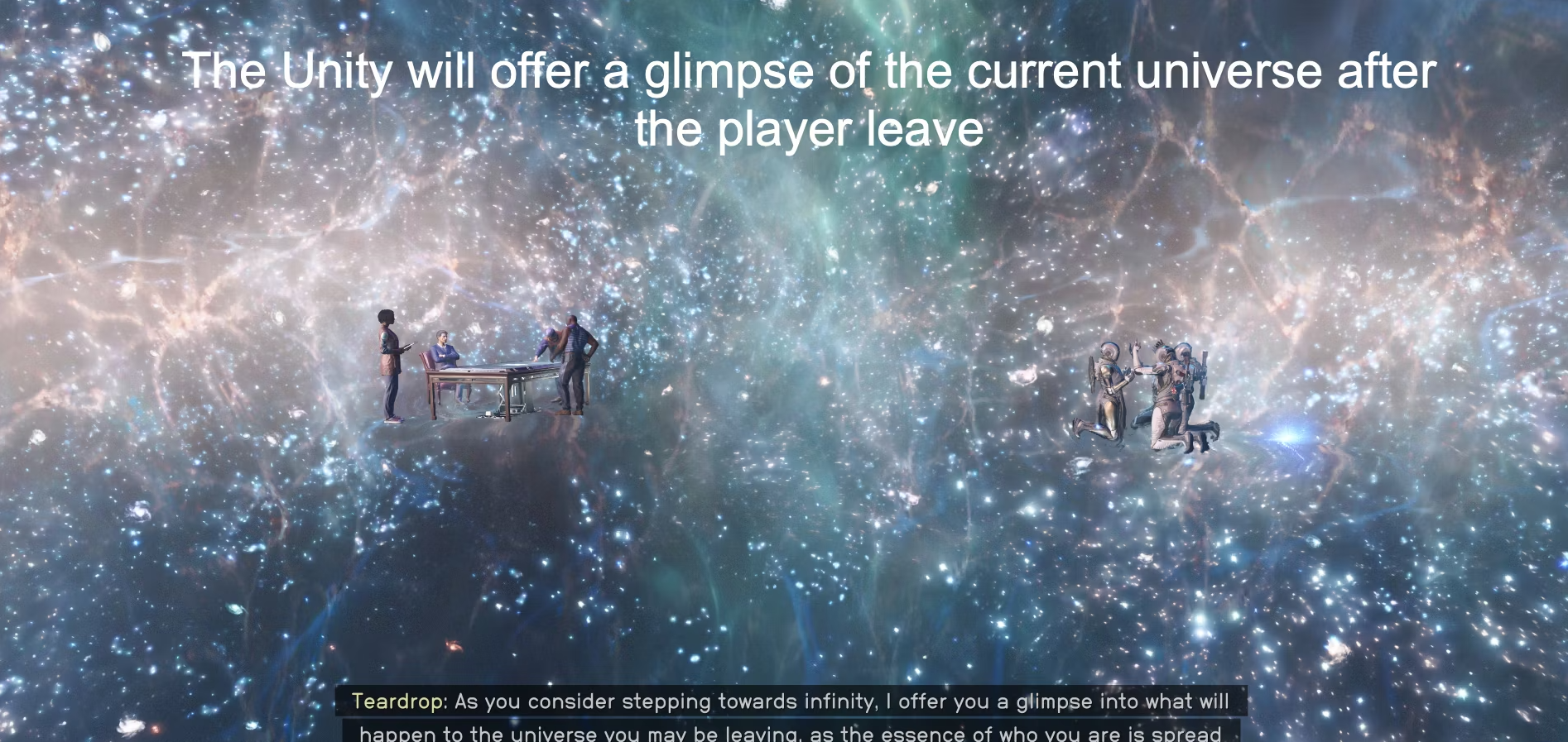 В конечном итоге Starfield - и само Единство - предоставляет игрокам два варианта: вперед, в сердце Единства, в новую вселенную, или назад, в ту вселенную, из которой игрок пришел. Это может быть сложный выбор, и игрокам следует хорошо подумать, что они хотят сделать. В самом "Единстве" игрокам дается краткое представление о том, что произойдет со вселенной, которую игрок оставит после себя, если он решит покинуть ее.