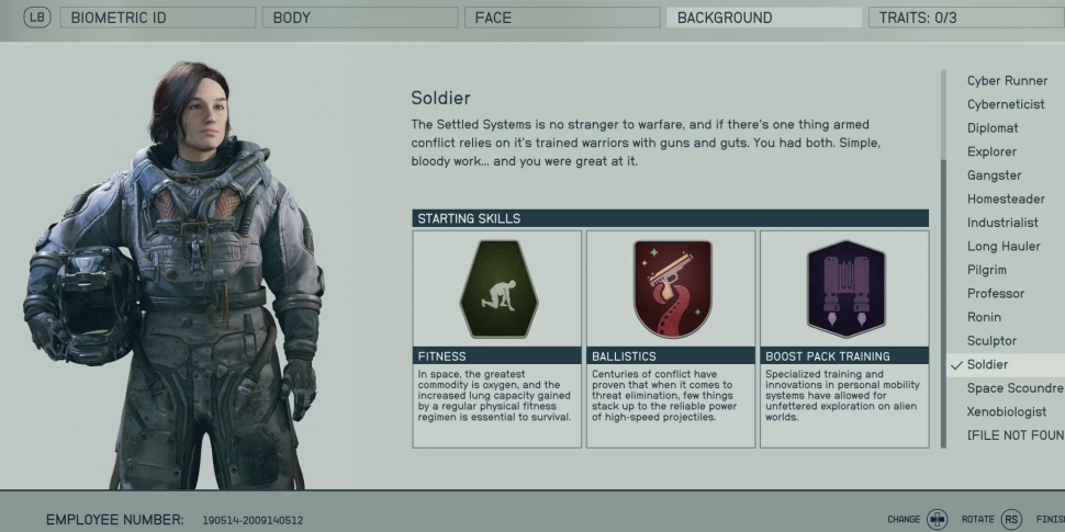 После короткой сцены игроки наконец-то смогут настроить своего персонажа. Помимо внешнего вида, игрок может выбрать биографию и черты характера. Предыстория определяет, какими тремя навыками вы начнете владеть, а черты характера имеют множество интересных эффектов.