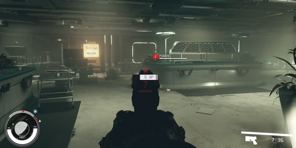 Оказавшись внутри объекта, идите налево к лестнице. Продолжайте следовать по синей путевой точке, чтобы в конце концов наткнуться на группу пиратов. Убейте их и разграбьте все имеющиеся у них предметы. Поскольку у игроков не так много патронов и оружия, сейчас самое время пополнить запасы.