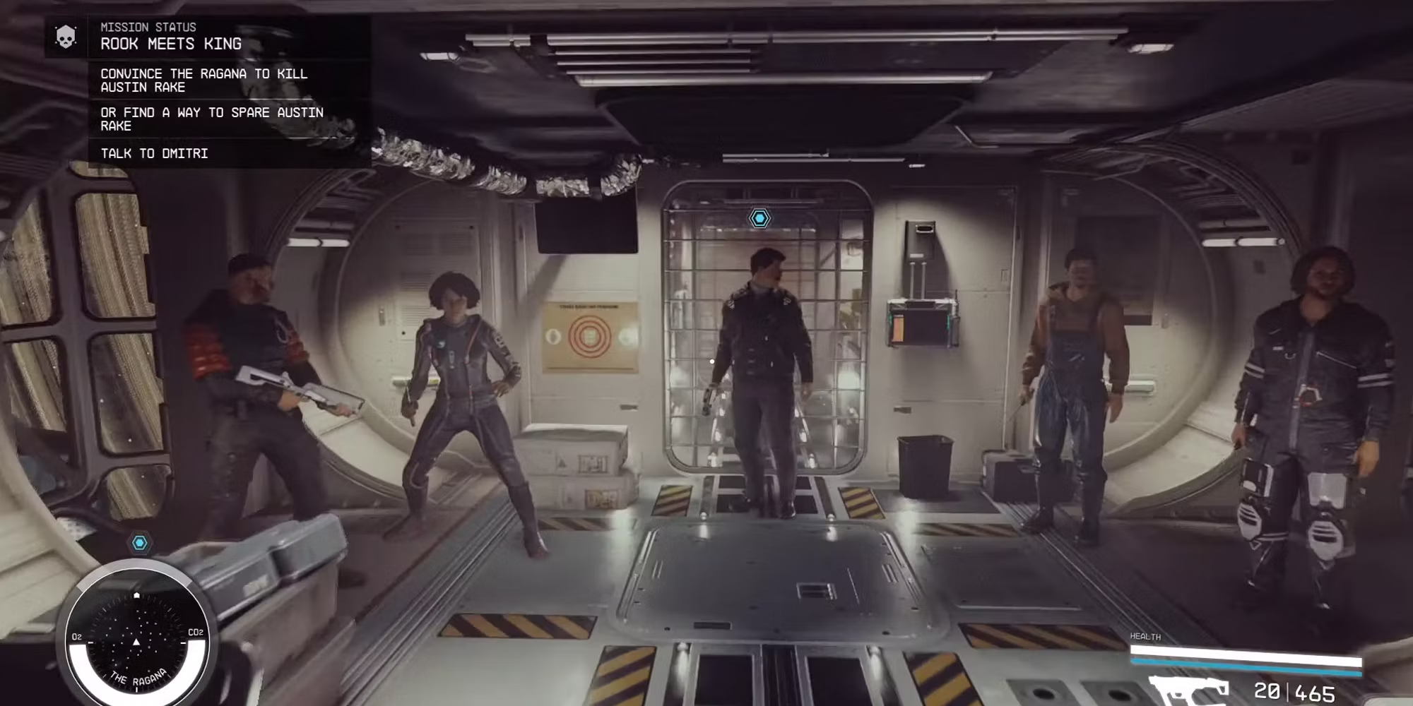 Это может быть разыграно по-разному: либо игроки могут убить всех и таким образом разрешить ситуацию, либо настроить экипаж друг против друга и заставить их убить Рэйка, не пошевелив и пальцем, либо договориться с Рэйком и позволить ему выжить, что означает, что им придется лгать Наеве, когда они снова будут ей докладывать. Если игрок убьет всех или позволит Рэйку и Дмитрию убить друг друга, то на теле Дмитрия можно будет найти скафандр и шлем Mark I, которые являются одними из лучших предметов во всей игре.
