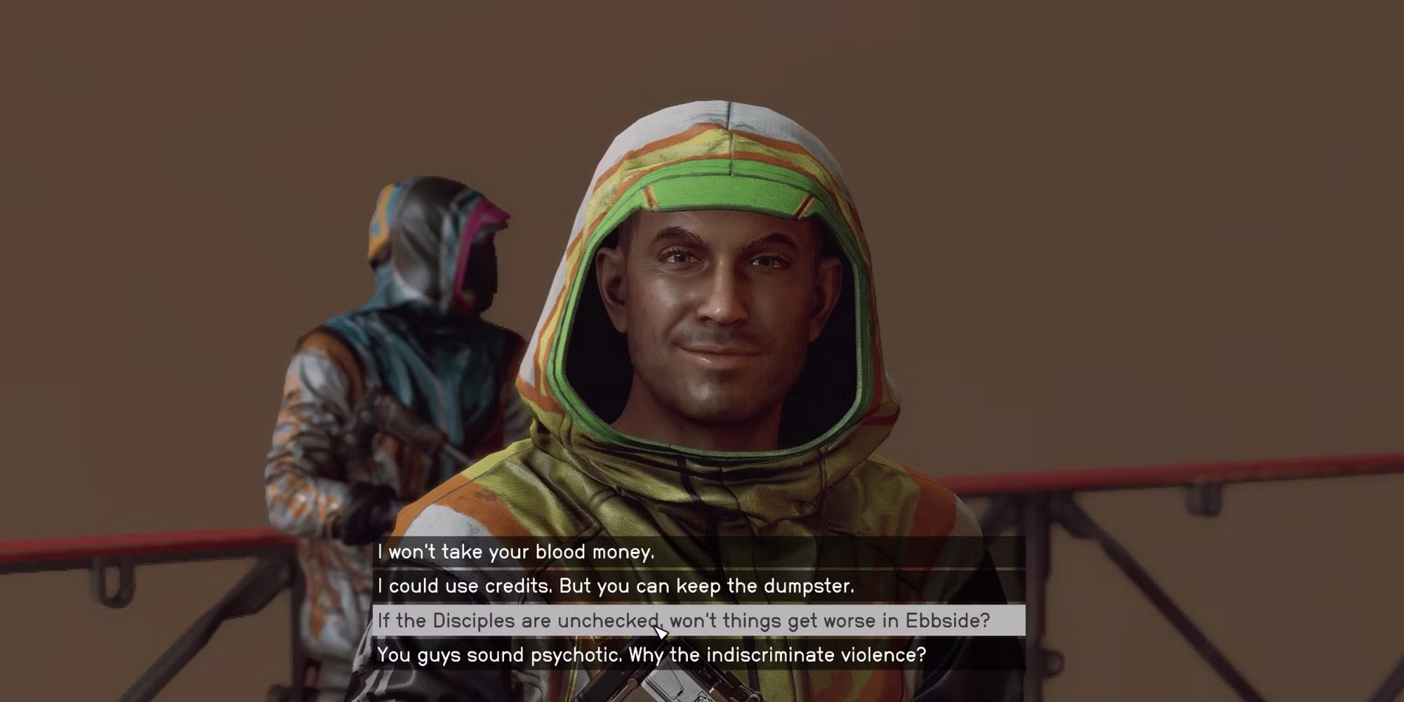 Первую группу можно найти в Эббсайде, спустившись на лифте на уровень рыбоперерабатывающего завода Xenofresh. Здесь можно найти банду, которая не будет сразу же настроена враждебно. С этой группой можно договориться и убедить ее уйти мирно, либо напасть на нее на месте.