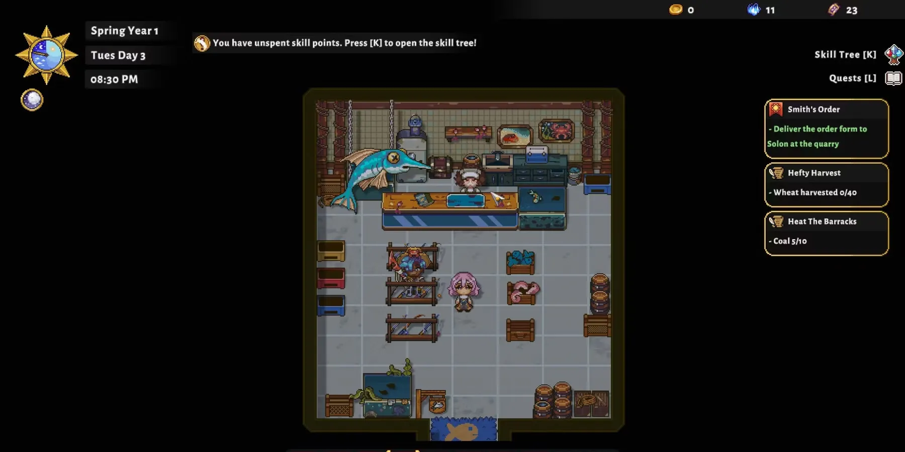Обязательно вкладывайте очки в навыки, повышающие ценность продуктов питания, такие как "Наконечник земледельца" и "Кулинарный мастер". Их бонусы станут более ощутимыми позже в игре, когда игроки смогут получить доступ к более экзотическим семенам и животным.