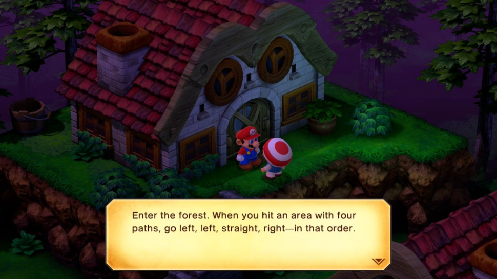 В благодарность за помощь, Тоад укажет Марио местонахождение комнаты с сокровищами в Лесном лабиринте. Игрокам следует обратить внимание на то, что указания Toad относятся к направлению, в котором Марио входит в каждую секцию.