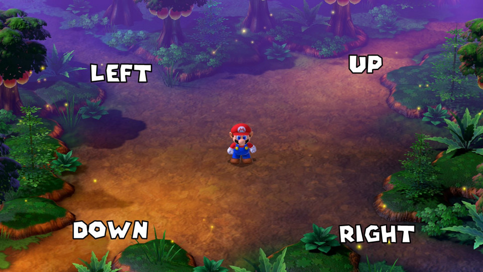 В Super Mario RPG первая часть леса довольно линейна. Продвижение вглубь лесного лабиринта осуществляется через пень, который работает как зеленая труба, ведущая в пещеру, расположенную внизу. Как только игрок попадает на другую сторону, начинается хаос: новые враги в изобилии, а с неба сыплются стрелы, которые замораживают Марио на месте.
