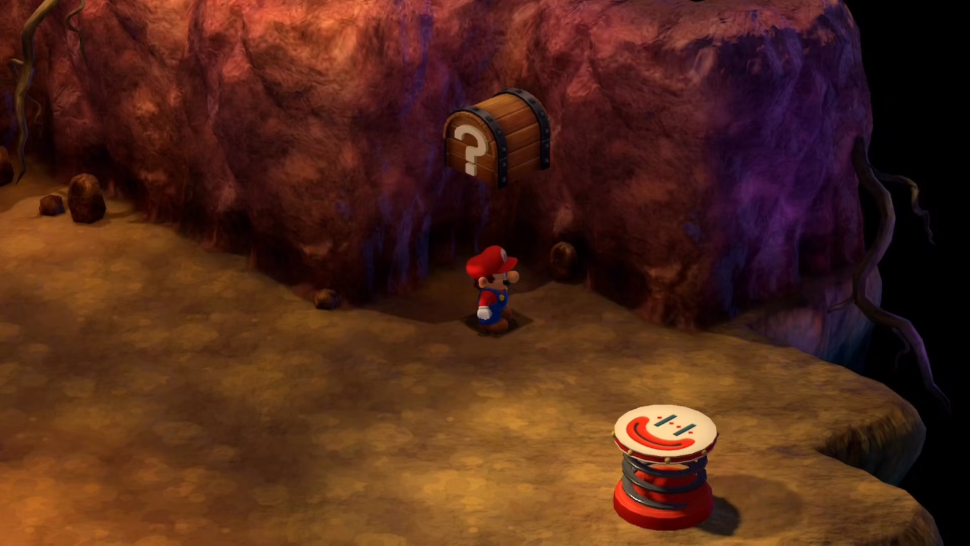 Как показано в видеоролике выше, игрокам нужно прыгнуть прямо перед плавающей платформой, чтобы обнаружить скрытый блок. Марио может забраться по этому блоку на самый верх, где на одной линии с видимым блоком спрятаны два сундука. Оба они содержат еще больше монет Frog Coins, которые игрок должен собрать.