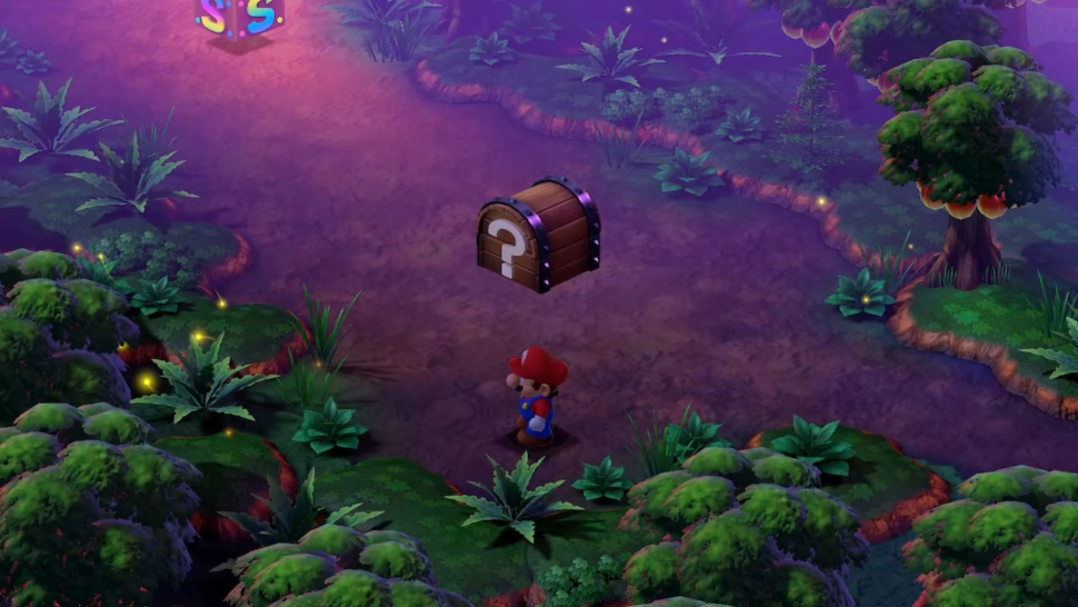 Первый из шести сундуков с сокровищами в лесном лабиринте Super Mario RPG можно найти сразу после входа в игру. Сундук находится слева от тропинки, ведущей вглубь леса.