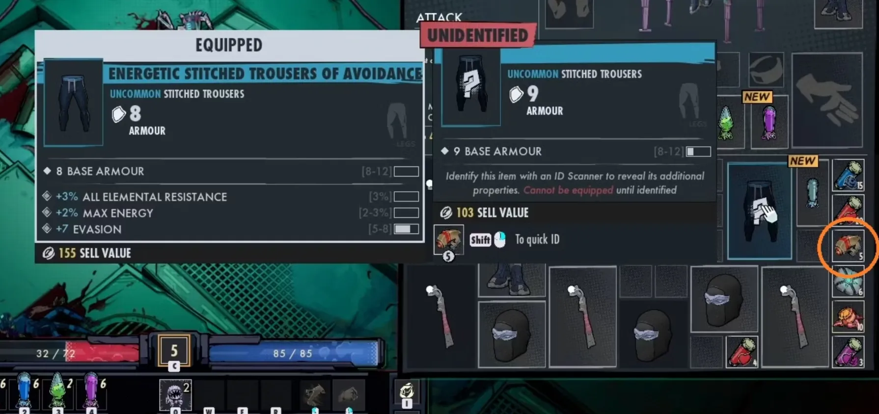 Но эти особые предметы нельзя экипировать, пока они не будут идентифицированы. Если геймеры надеялись, что в городе Эрос кто-то будет слоняться без дела и бесплатно идентифицировать все снаряжение, то в Superfuse это не так просто. Тем не менее, игроки могут идентифицировать снаряжение самостоятельно.