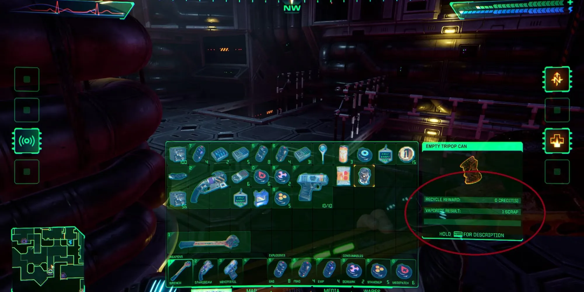 Переработка отходов важна даже в футуристическом мире System Shock, и игроки могут многое выиграть, сдавая случайный хлам, который они находят (или делают) по всей станции Цитадель. В условиях ограниченных ресурсов хакеру придется использовать все, что попадется под руку, если он хочет выжить.