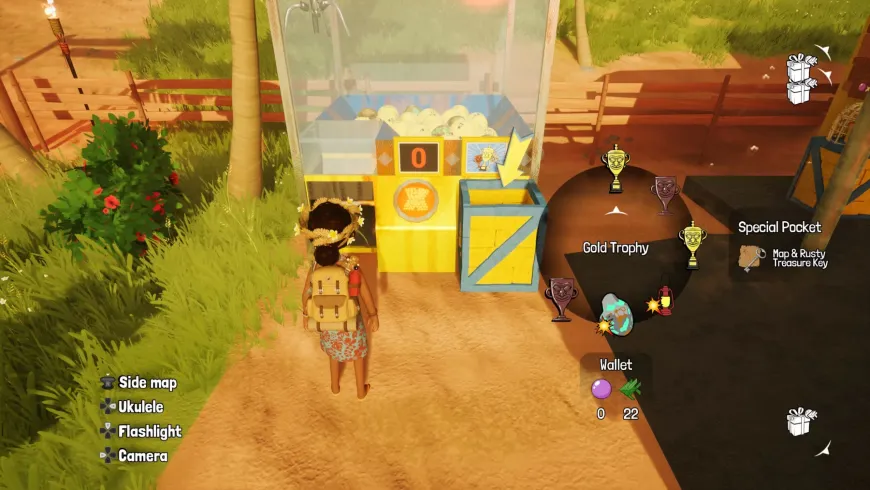 Найдя машину с когтями, игроки обязательно заметят, что к ее передней части прикреплен мусорный бак. Чтобы принять участие в этом задании Tchia, фанаты должны выбрать трофей из рюкзака главного героя и бросить его в урну, при этом они получат три попытки независимо от типа используемого трофея.
