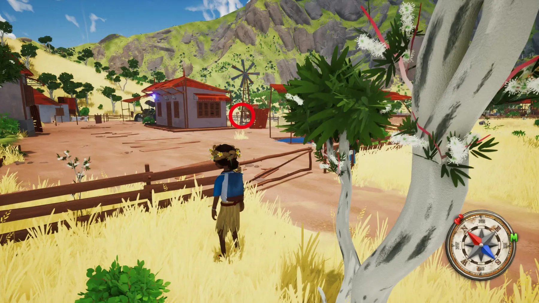 Здесь игроки найдут тир для стрельбы, стенд для скульптур и несколько безделушек. Игроки также наверняка заметят, что в этой части деревни за ветряной мельницей находится курятник, и им следует прыгнуть душой в одну из кур, которые называют этот курятник своим домом. Для полной ясности, игроки могут совершить прыжок души в Tchia, нажав L1, чтобы войти в режим прыжка души, нужно навести прицел на курицу и нажать R2, после чего игроки получат контроль над этим существом.