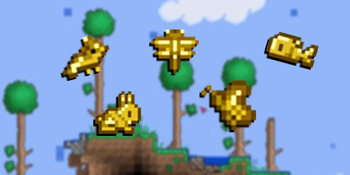 Чтобы создать Golden Delight в Terraria, игрокам сначала нужно поймать один из 13 видов золотых птиц. К ним относятся золотая птица, кролик, бабочка, стрекоза, лягушка, золотая рыбка, кузнечик, божья коровка, мышь, морской конек, белка, водный страйдер и червь, вероятность появления каждого из которых составляет менее 0,5%.