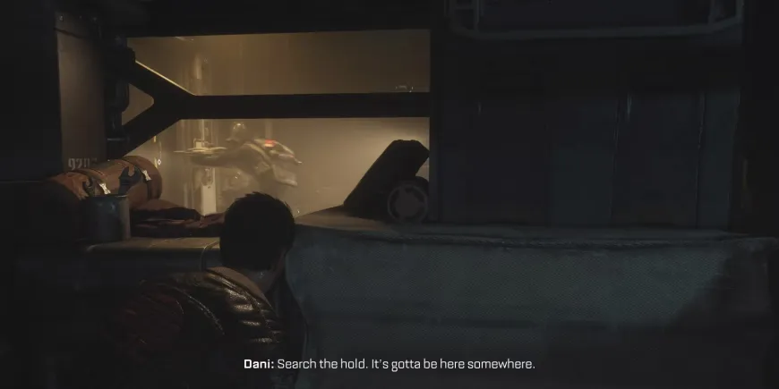 Проходя через грузовой отсек, скрытый ящиками и полками, игроки увидят террористов Outer Way, перемещающихся по коридорам корабля. К счастью, это всего лишь заскриптованная сцена. Так что игрокам Callisto Protocol пока не придется беспокоиться о том, что им придется пробираться мимо врагов или гротескных монстров.