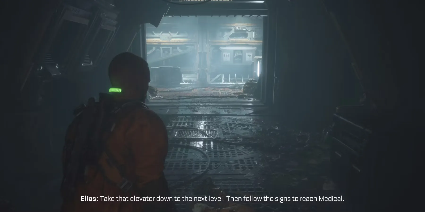 После того как биофаги будут убиты, пройдите через дверь в медкабинет C105. Оттуда игроки найдут две двери. Чтобы найти станцию Reforge и припасы, игроки должны пройти через дверь в Med Lounge C106. Чтобы продвинуться по сюжету, пройдите через дверь в Med Observation C108. Сразу за этой точкой находится шахта лифта с полуоткрытой дверью. Как только игроки войдут в шахту лифта, Элиас будет управлять лифтом дистанционно.