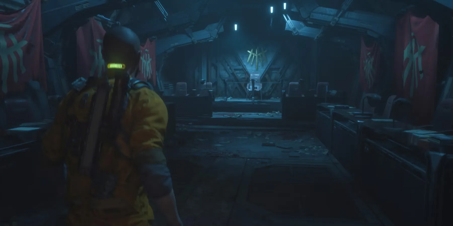 В начале третьей главы "The Callisto Protocol" игроков встретит еще одно заранее записанное голограммное сообщение от начальника. В этой зоне также находится неисправный блок безопасности, но он не представляет угрозы. Когда вы откроете соседнюю дверь, на вас нападет биофаг. После его уничтожения и перехода в следующую комнату появится сцена, в которой Джейкоб встретится с Элиасом. Прежде чем следовать за Элиасом, убедитесь, что разграбили шкафчики, так как в них находятся Кредиты.