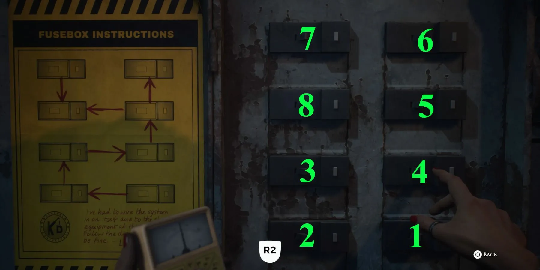 Вернитесь в комнату технического обслуживания и введите код. Он откроет дверь и откроет вторую из трех головоломок "The Devil in Me". Чтобы включить свет, игрокам нужно будет убедиться, что они нажимают на предохранители в правильном порядке. Сначала взаимодействуйте с блоком предохранителей, затем выберите электрометр из инвентаря Джейми. После этого следуйте порядку стрелок, чтобы решить головоломку.